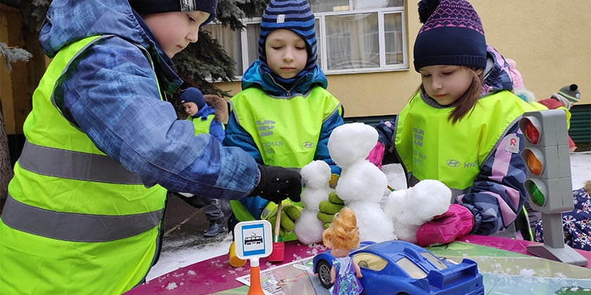 Ребята узнали, чем отличаются светофоры для пешеходов и транспорта, почему надо крепко держать за руку взрослых при переходе пешеходного перехода, какие «дорожные ловушки» могут подстерегать пешеходов во дворах, а также про важность использования световозвращающих элементов в темное время суток. Юные участники дорожного движения ответили на вопросы тематической викторины и продемонстрировали навыки перехода проезжей части с учетом полученных знаний.