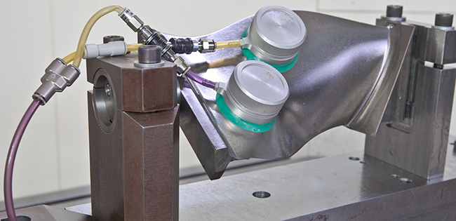 Основная идея технологии, предлагаемой коллективом инженеров ЦАГИ, – применение быстросъемных гасителей вибраций заготовки, что делает процесс фрезерования высокопроизводительным. «Компрессорные лопатки являются одними из наиболее ответственных деталей двигателя, поэтому к ним предъявляются особенно жесткие технические требования по качеству и точности изготовления. Однако производительность их фрезерной обработки на оборудовании с ЧПУ существенно ограничивается вибрациями заготовки при использовании высокоскоростного резания. Среди негативных последствий – порча поверхности и потеря точности геометрических характеристик», – пояснил инженер научно-технического центра НПЦ ФАУ «ЦАГИ» Владимир Пупчин.