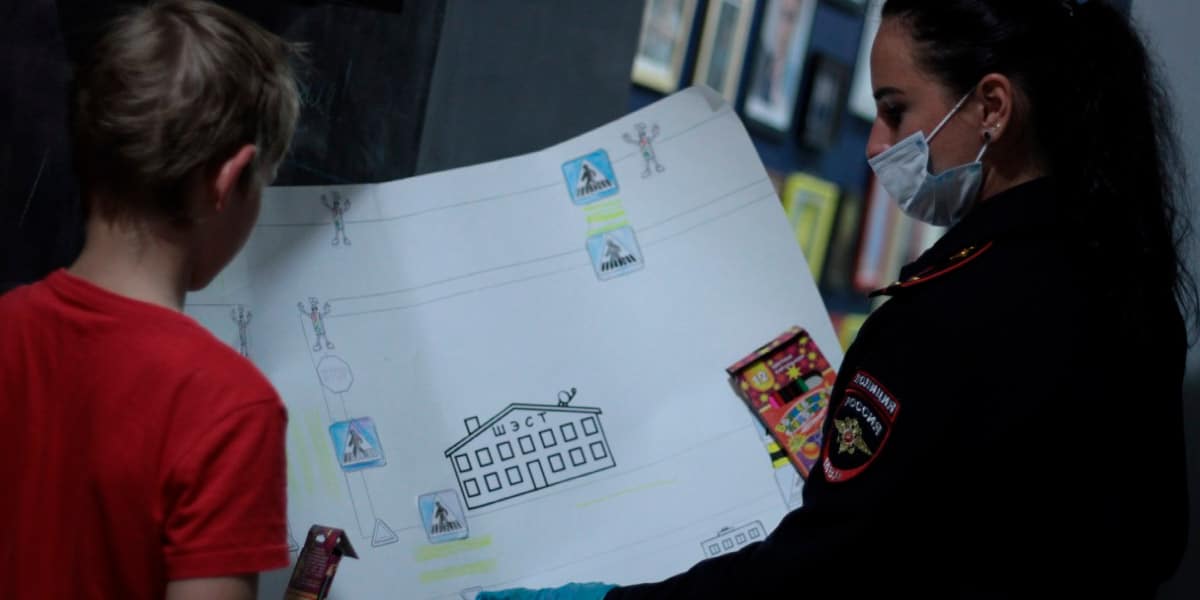 В начале урока полицейские обсудили с детьми, какие правила должны соблюдать пешие участники дорожного движения и рассмотрели особенности инфраструктуры около здания, где проходят занятия для маленьких артистов.