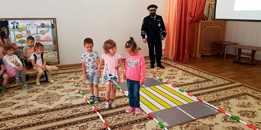 Малыши с удовольствием принимали участие в викторинах, конкурсах и соревнованиях по знанию правил дорожного движения. Особое внимание уделено переходу проезжей части на регулируемых и нерегулируемых участках улично-дорожной сети.