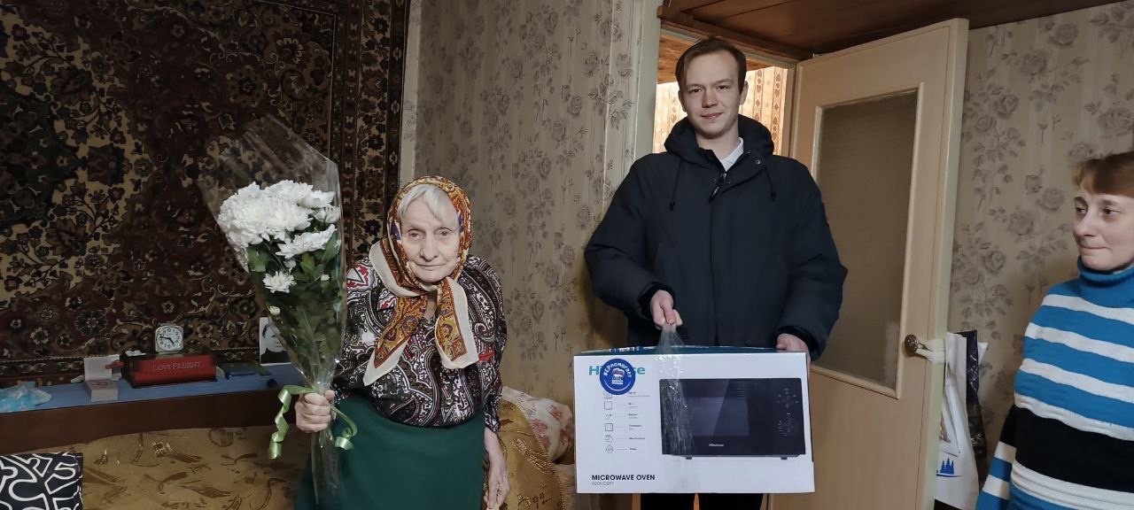 24 февраля член местного штаба Молодой Гвардии Сергей Букотько вместе с активистами местного отделения партии «Единая Россия», поздравили ветерана Великой Отечественной Войны Николаеву Евдокию Захаровну с Днём защитника Отечества и вручили подарок, новую микроволновую печь.