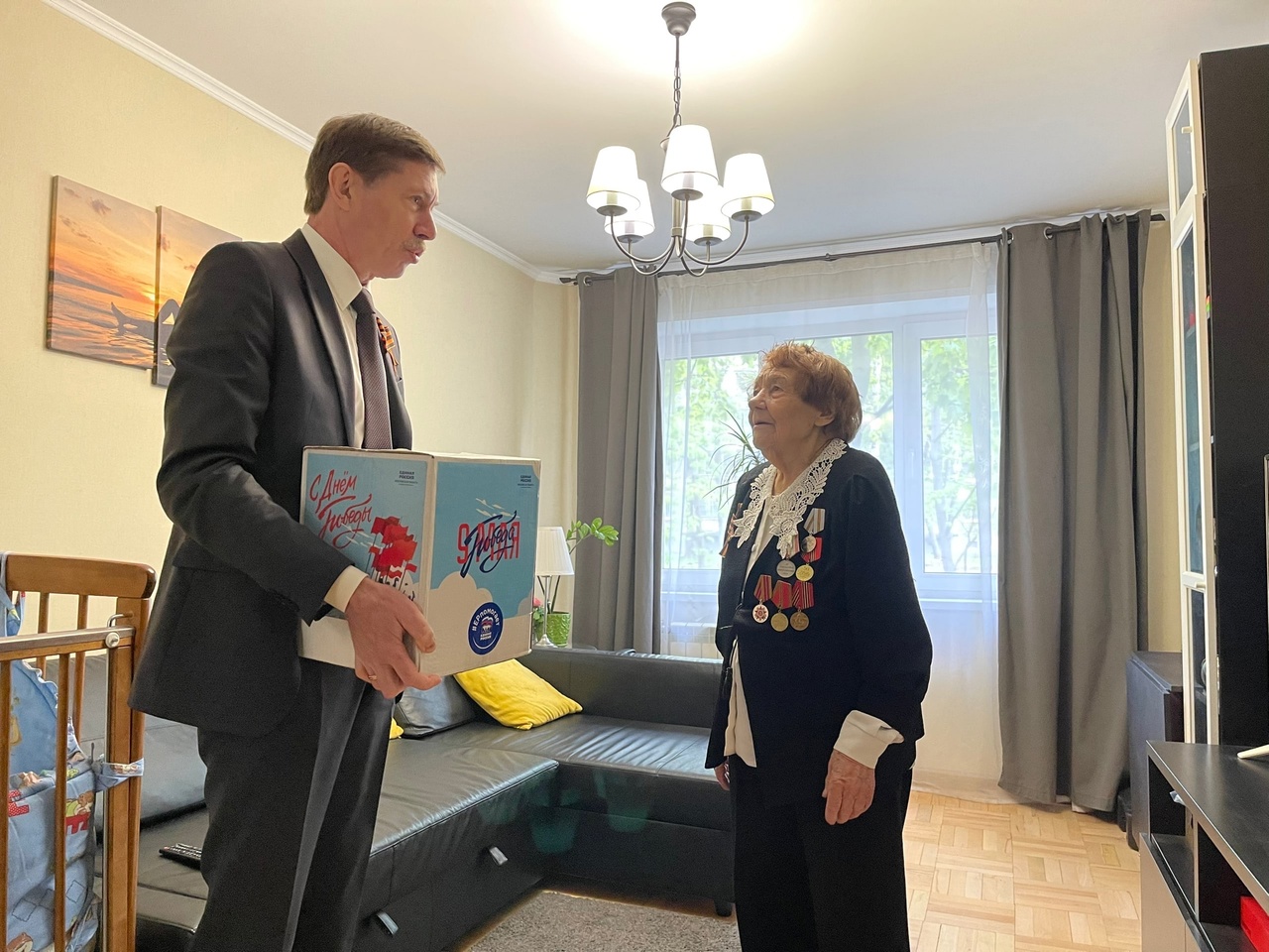 Руководитель фракции партии Единая Россия в городском Совете депутатов Игорь Алексеевич Марков, поздравил Ветерана Великой Отечественной войны Веру Степановну Ромашину с наступающим Днем Победы