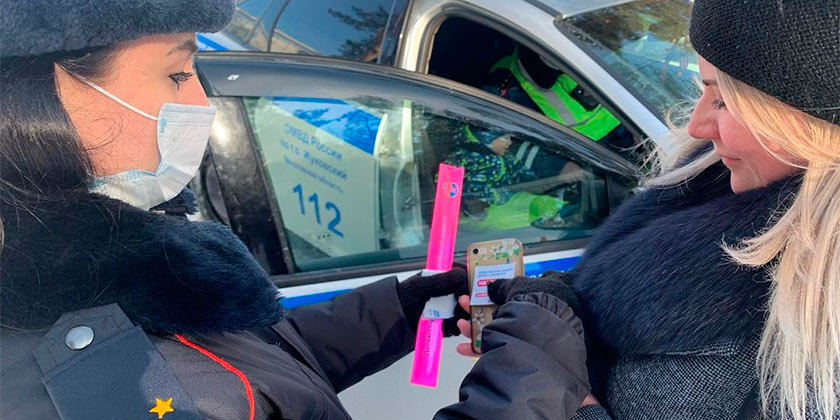 Автоинспекторы предложили участникам дорожного движения разместить на смартфоны рекомендации по безопасности в виде наклеек.Самых маленьких посетителей парка сотрудники дорожно-патрульной службы познакомили с устройством служебного автомобиля и вручили световозвращатели в подарок