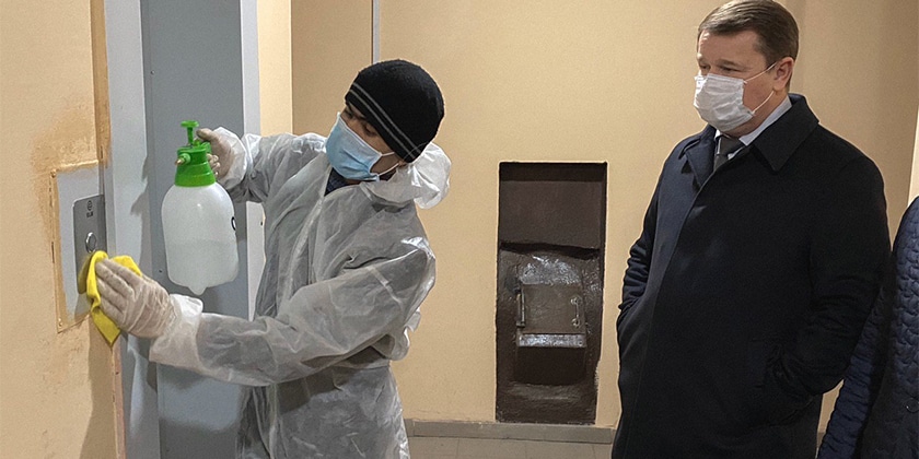 «В нашем городе дезинфекция подъездов⠀выполняется ежедневно. Управляющие компании, ТСЖ и ЖСК обрабатывают полы, почтовые ящики, входные группы, домофоны, лифты и перила. В Жуковском располагается 595 домов и 1735 подъездов, и все их необходимо продезинфицировать», — цитирует телеграм-канал «Жуковский.Online» Ю.Прохорова. ⠀