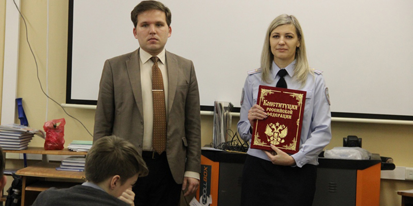 Сотрудники ОМВД России по г.о. Жуковский совместно с членом Общественного совета провели для учеников одной из школ округа патриотическое мероприятие, посвященное Дню Конституции Российской Федерации.