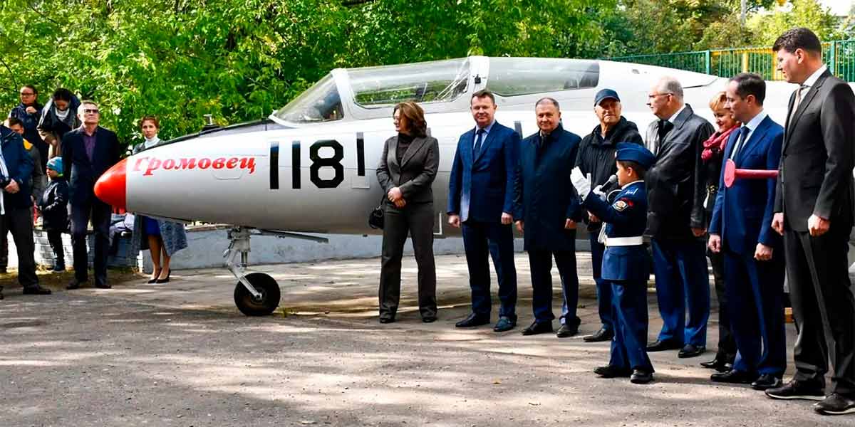 В Жуковском состоялась торжественная церемония передачи самолета Л-29 в качестве учебного пособия учащимся лицея №14. Символический ключ от нового учебного пособия передал руководителю лицея генеральный директор ЛИИ им. Громова Евгений Пушкарский.